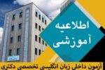 اطلاعیه برگزاری آزمون داخلی زبان انگلیسی تخصصی دکتری (اردیبهشت ۱۴۰۵)